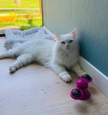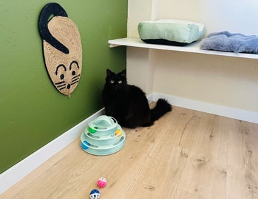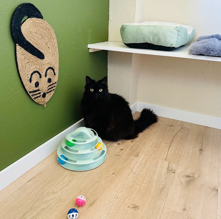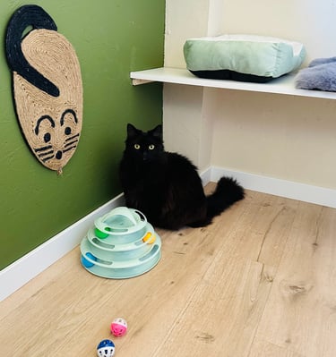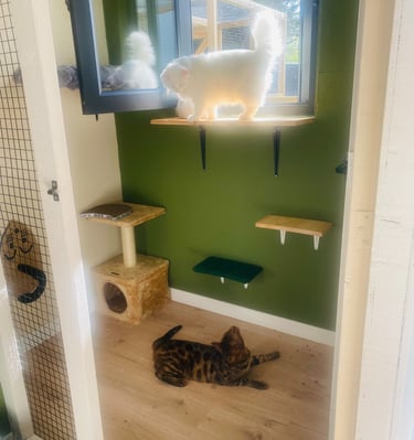 Mon objectif est simple : permettre à chaque chat de vivre un séjour serein, pendant que son humain est absent, dans un lieu calme, propre et chaleureux. Ici, les chats ne sont jamais “juste de passage” : ils sont accueillis comme à la maison, avec tout le soin et l’affection qu’ils méritent.